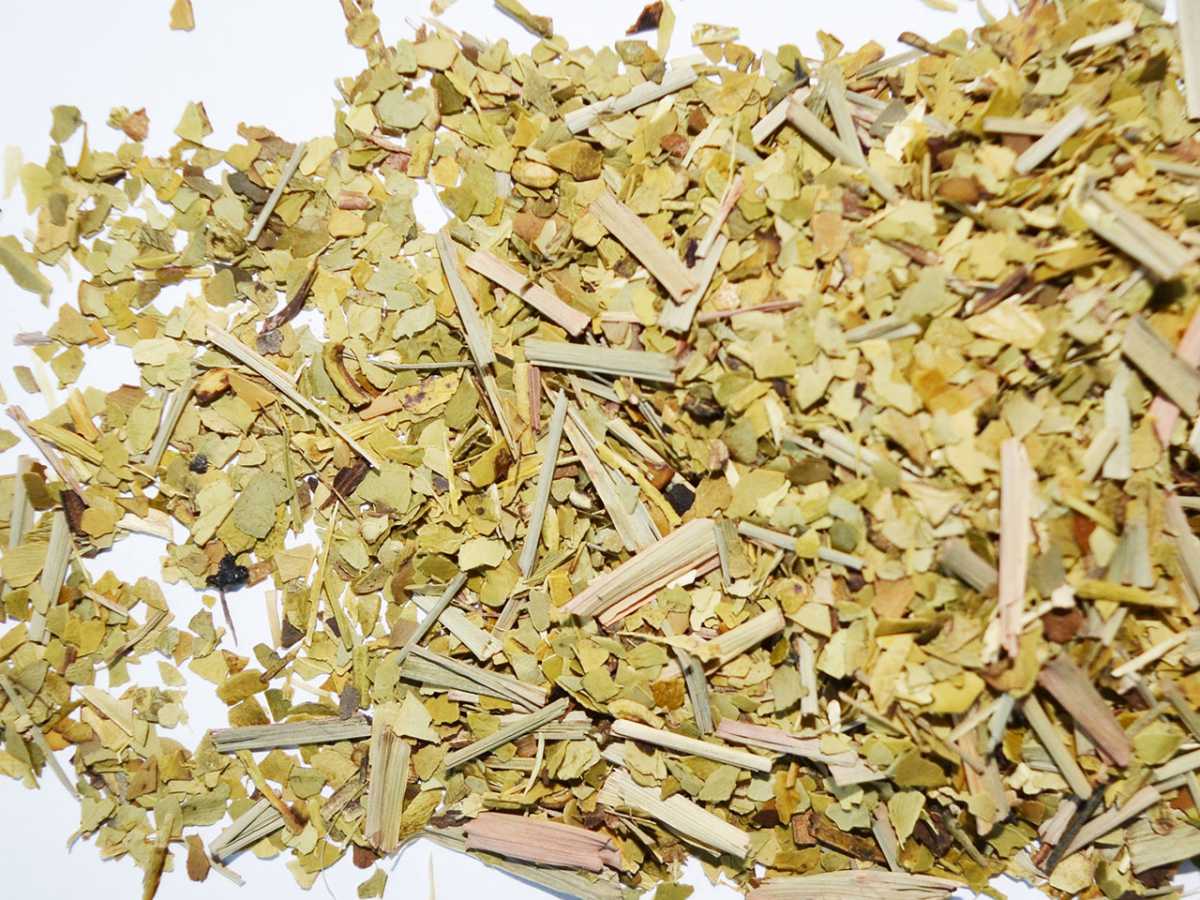 Зеленый мате, кусочки цедры лимона, лимонная трава.